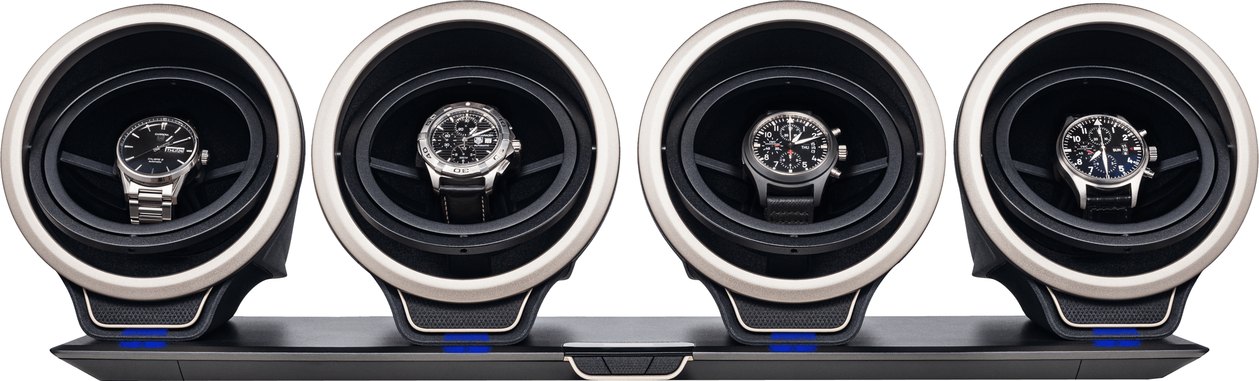 The Impact was designed to be modular. This means that You can enlarge number of modules in the same time as you enlarge your watch collection. Every module is self operating so you don't need any cables or connectors to join them together.
